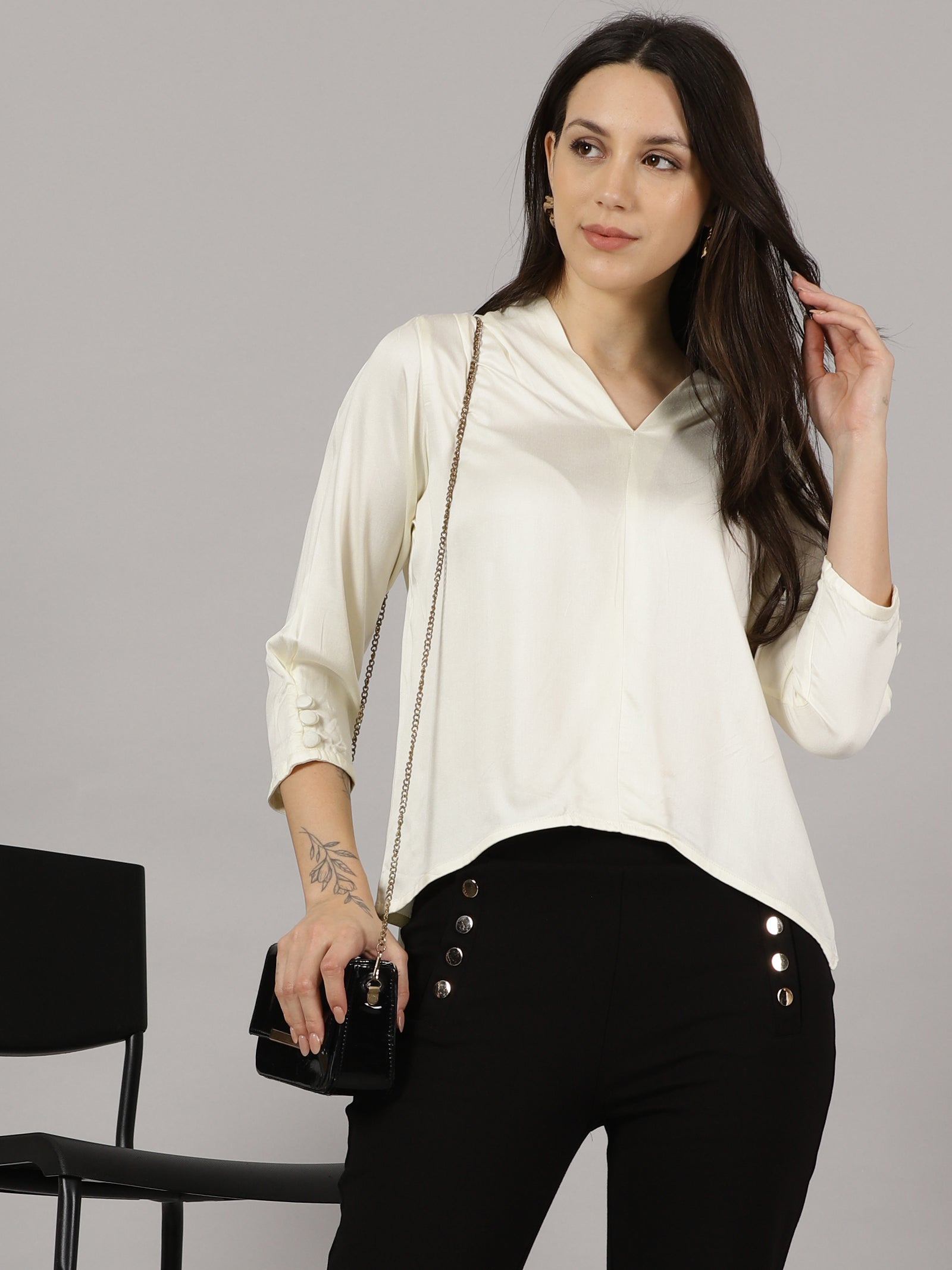 Cream V-Neck Viscose Top