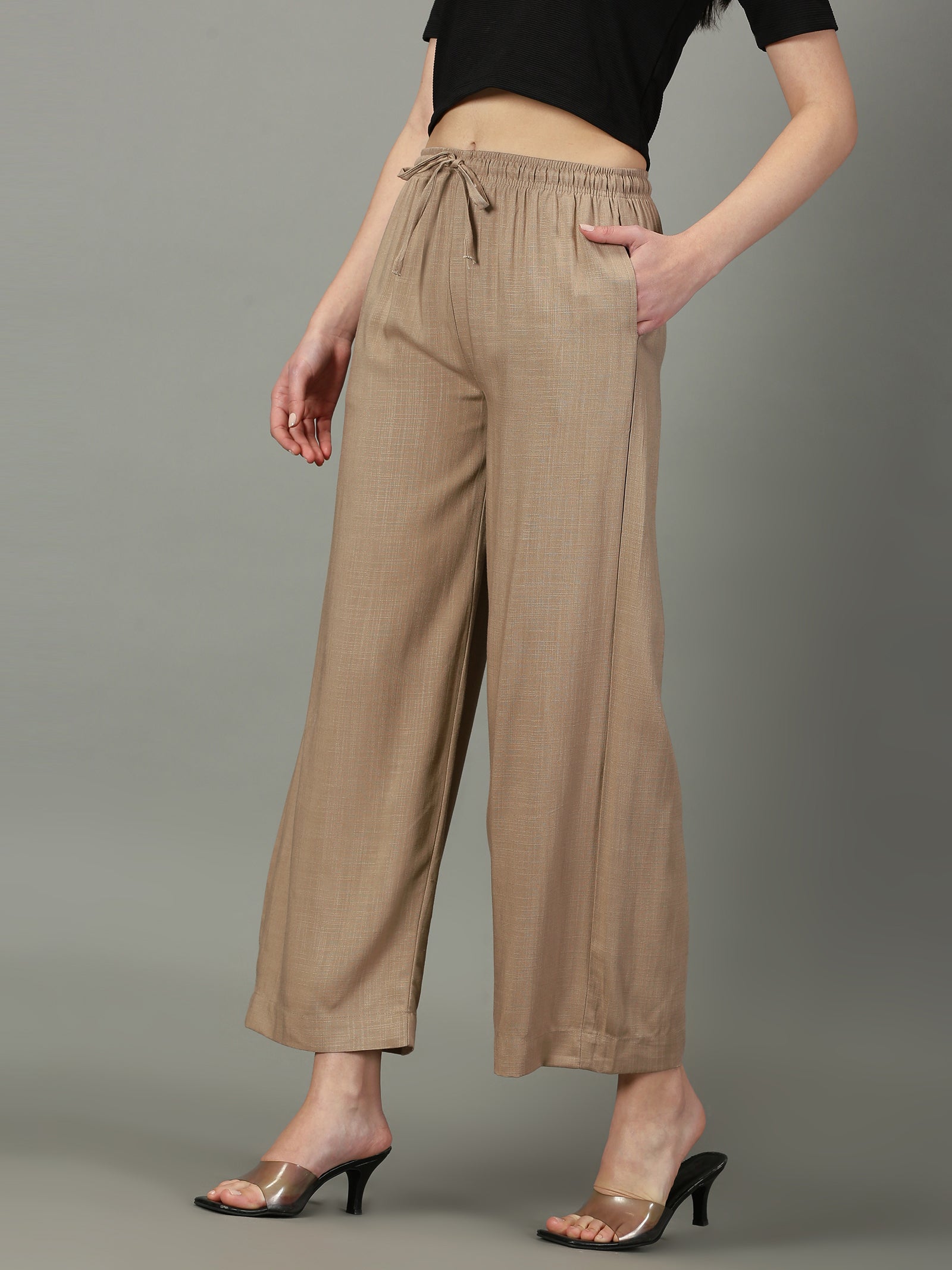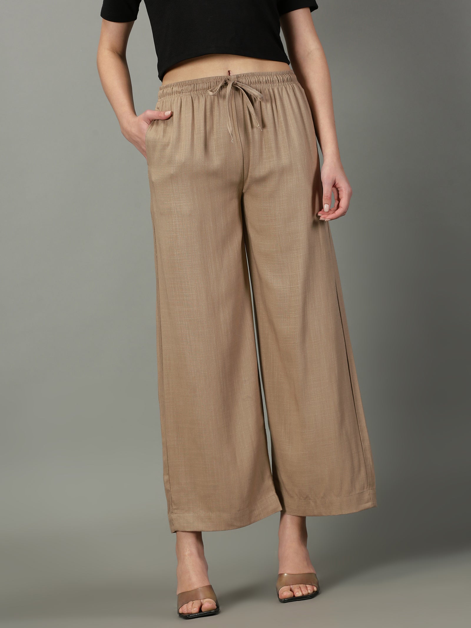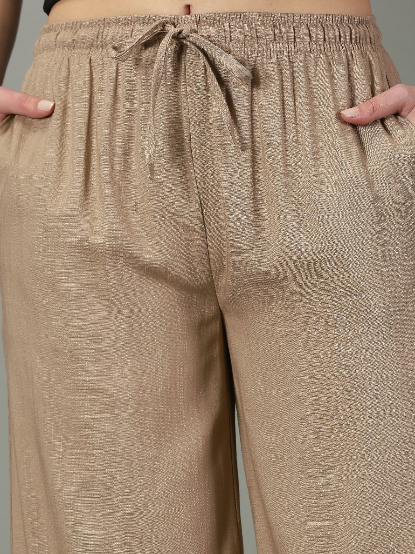 Dark Beige Solid Slub Palazzos