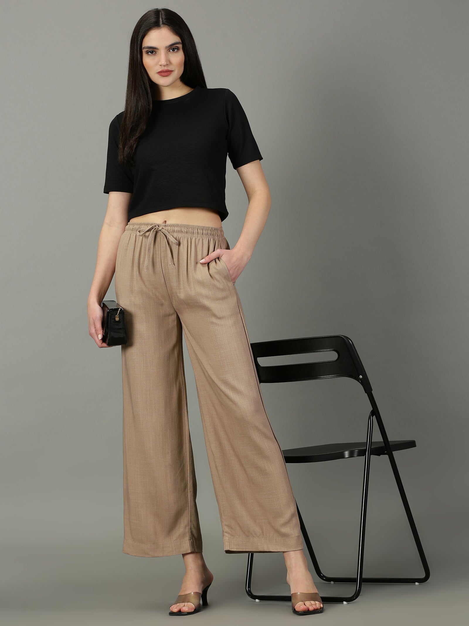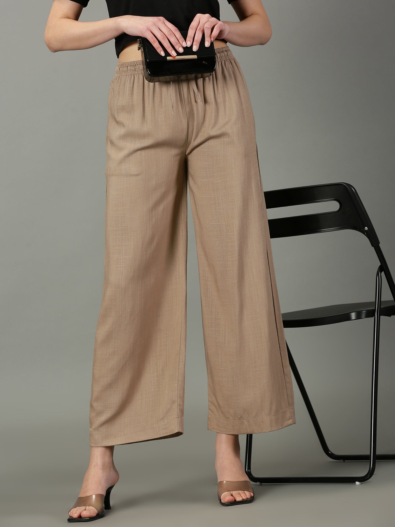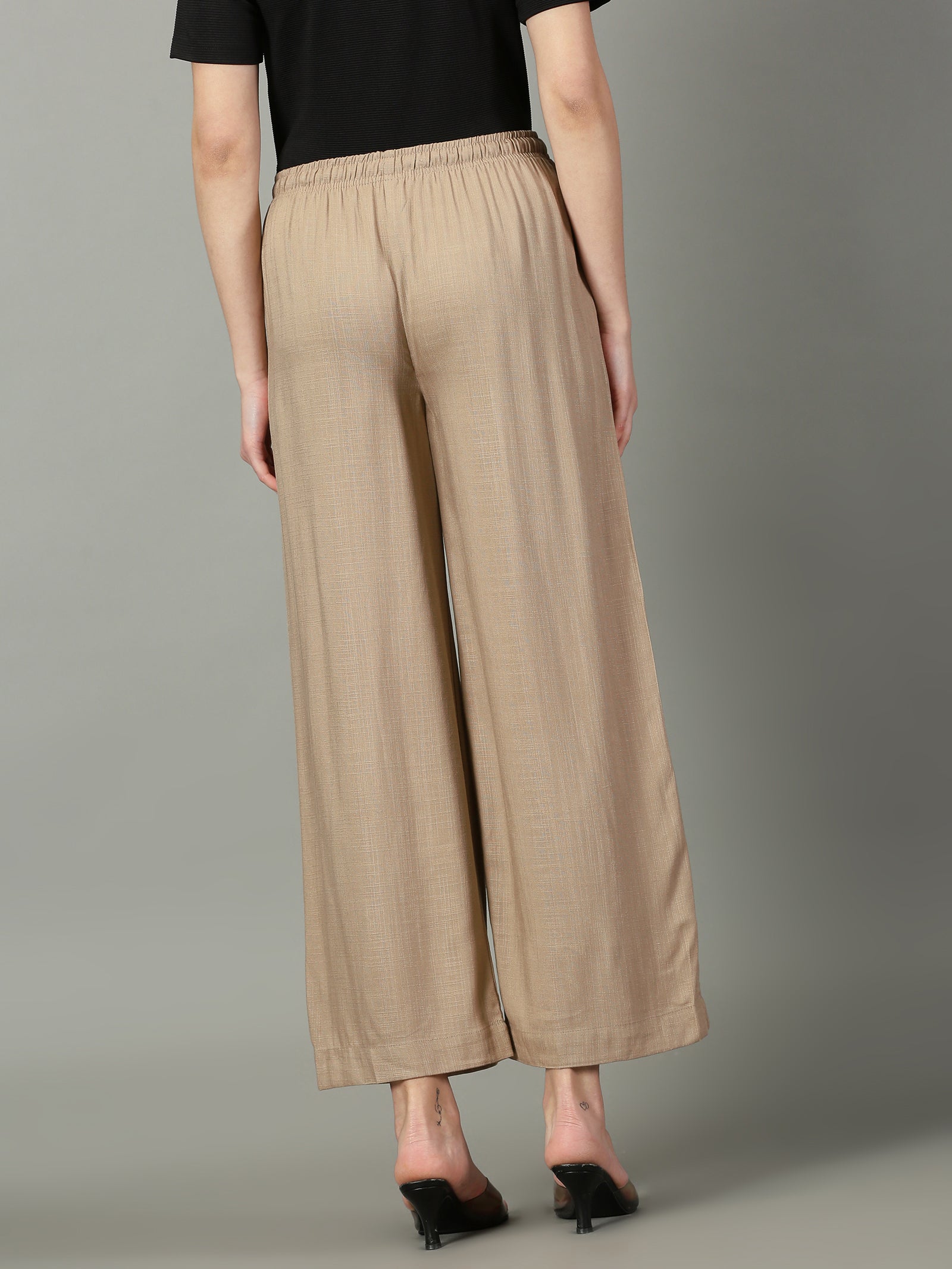 Dark Beige Solid Slub Palazzos