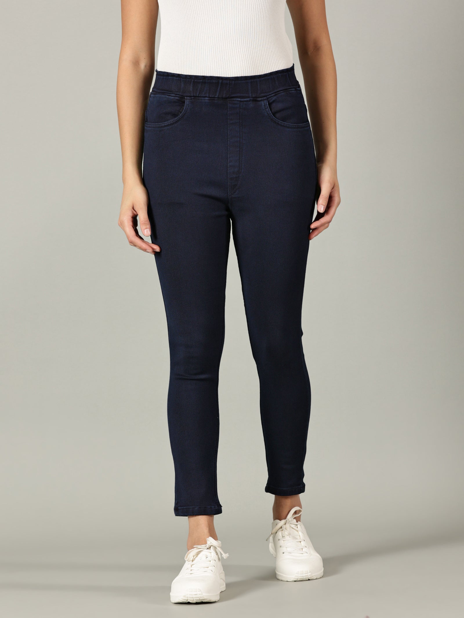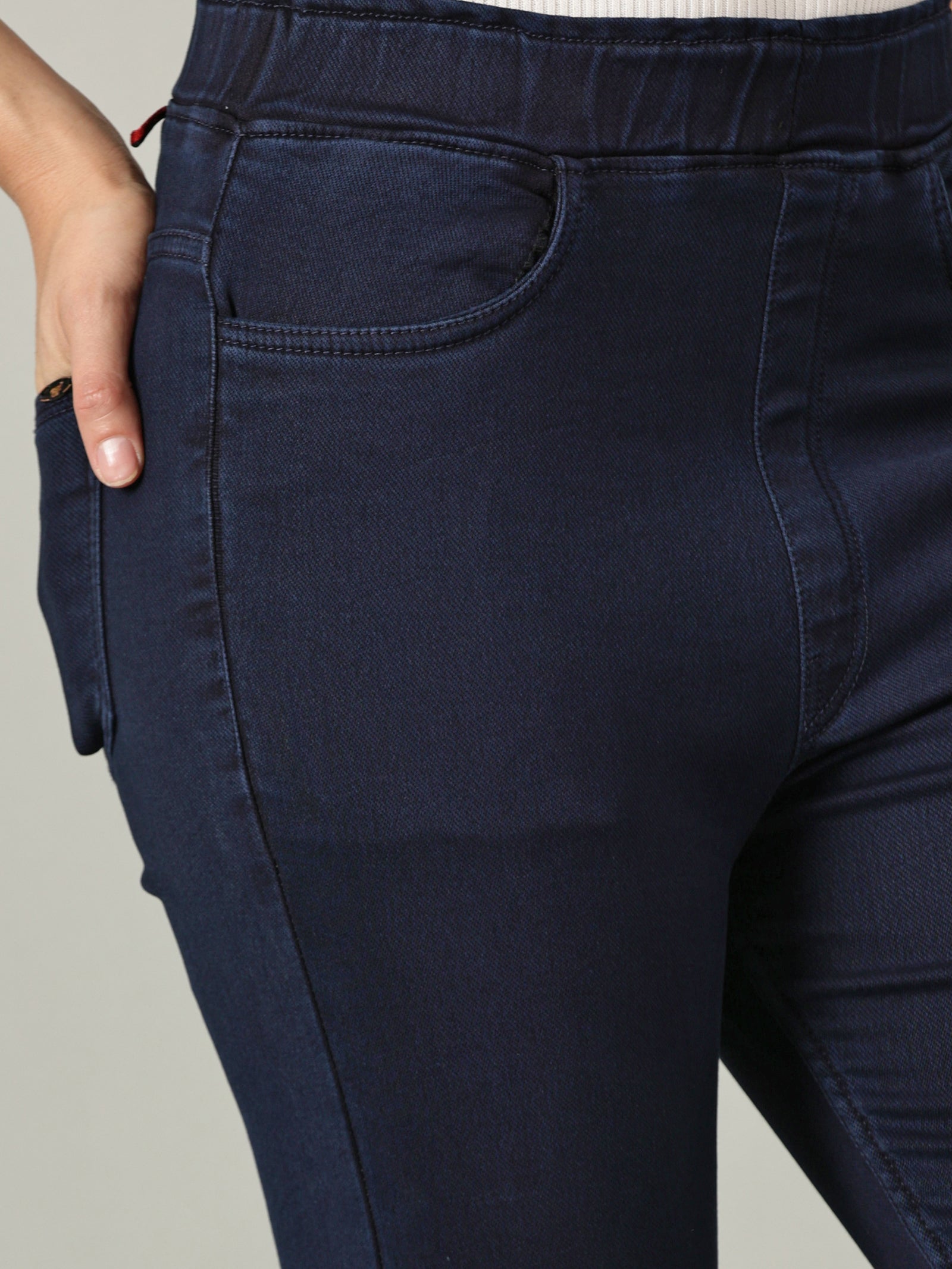 Navy Blue Denim Super Stretchable Jeggings (Skinny Fit)