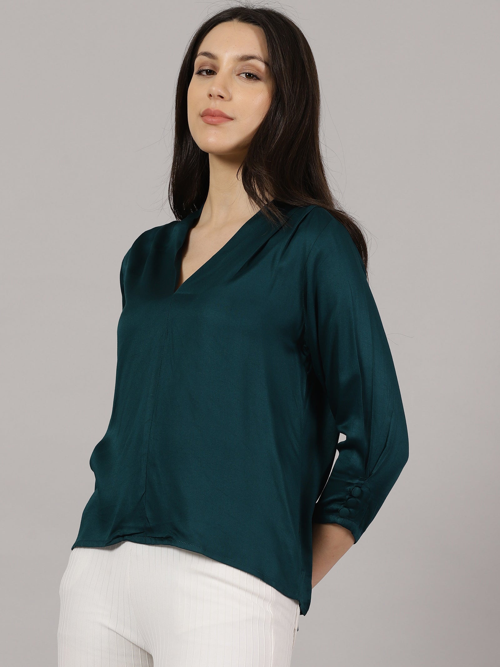 Teal V-Neck Viscose Top